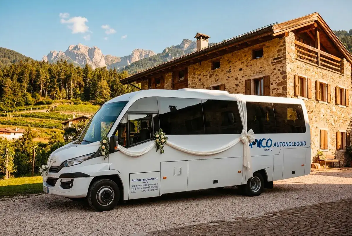 Il minibus da 9 posti è il veicolo perfetto per chi cerca flessibilità , comfort e un servizio personalizzato. Con Autonoleggio Amico avete a disposizione van di ultima generazione — Ford Tourneo Custom e Renault Trafic — con poltrone in pelle reclinabili e reversibili, Wi-Fi, 10 prese USB, climatizzazione indipendente posteriore, dispositivi Isofix per i più piccoli e un bagagliaio molto capiente. Il nostro autista professionista vi accompagna ovunque: dai transfer aeroportuali ai tour privati nelle Dolomiti, dalle cerimonie alle trasferte aziendali. Il minibus è il noleggio con conducente ideale per chi viaggia in piccolo gruppo e vuole il massimo della comodità senza rinunciare alla flessibilità . Ogni van è equipaggiato con pneumatici invernali Michelin e catene durante la stagione fredda, per garantire la massima sicurezza anche sui percorsi alpini e dolomitici più impegnativi.